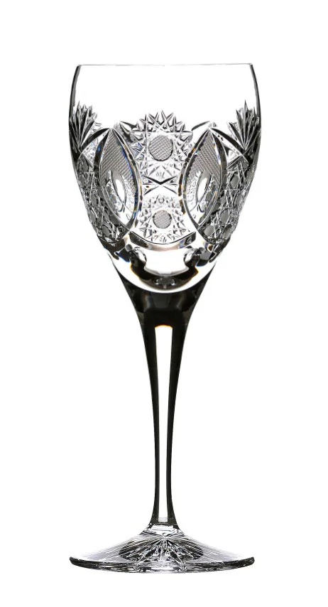 Elegáns kristály borospohár, klasszikus, gazdag csiszolattal. Igazi dísze egy pompás terített asztalnak, de egy hétköznapi koccintást is ünnepivé varázsolhat. Valódi ólomkristály kehely, amelyről érdemes tudni, hogy összetételénél fogva más fénytöréssel rendelkezik, mint a hagyományos üveg, ezért a csiszolatok sokkal csillogóbbak és fényesebbek.Nézze meg a hozzá illő PEZSGŐS kelyhet is.